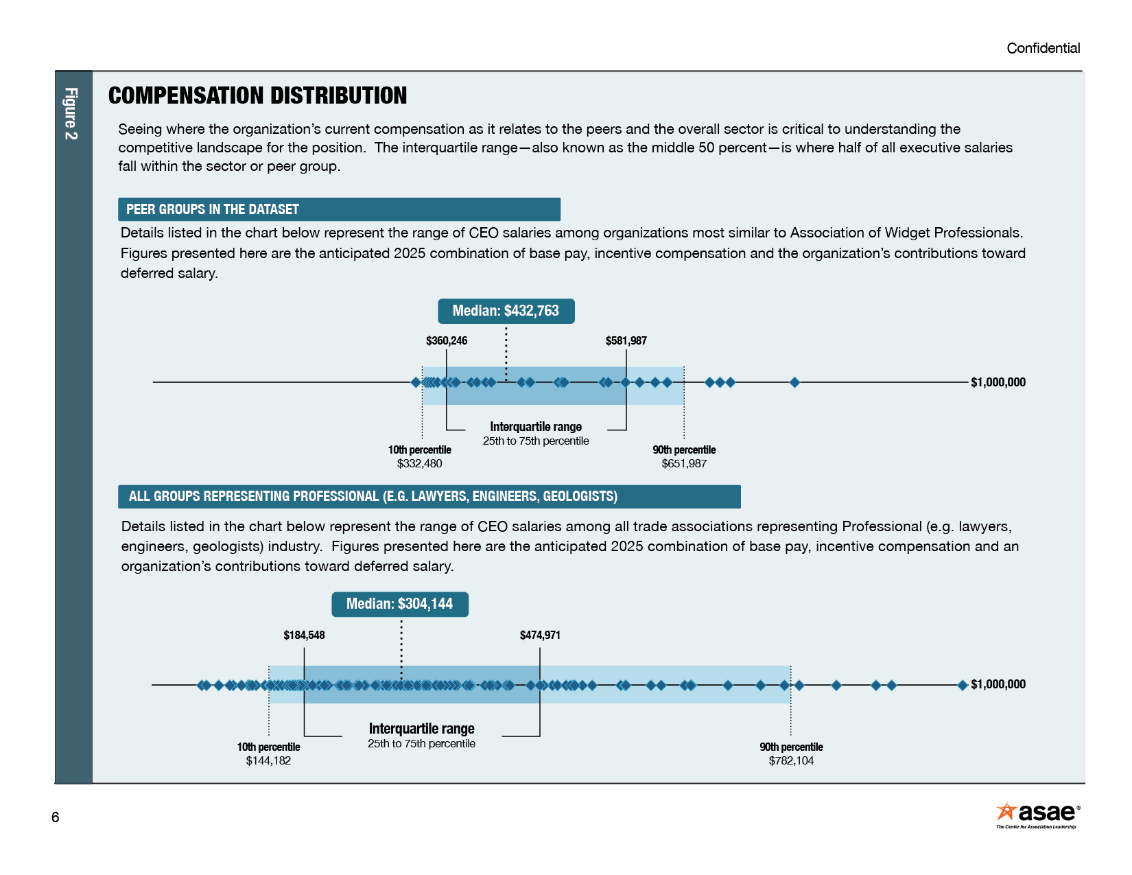 This comprehensive benchmarking product is a customized report tailored to your organization. Paring ASAE's industry-leading classification database of U.S.-based associations and nonprofits with access to millions of datapoints on finances and compensation, our compensation researchers created a bias-free, data-driven salary report tailored to your organization that thoroughly and completely captures the marketplace and its compensation practices.